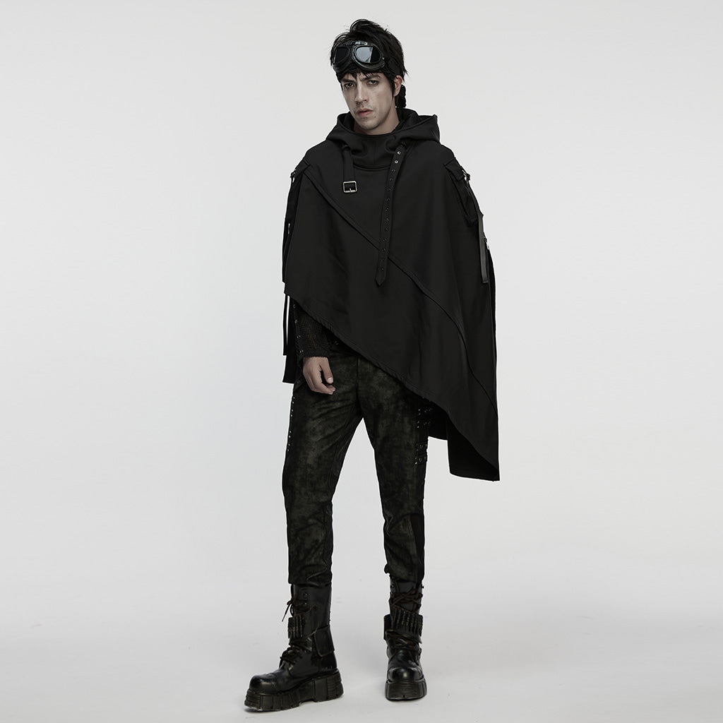 Introducing the Gothic Asymmetrical Punk Coat with Hood and Buckle Detail, an embodiment of dark, avant-garde aesthetics melded with bold punk attitude. This coat is meticulously crafted for those who dare to stand out with its striking asymmetric cut and intricate buckle details. Perfect for both everyday wear and making a dramatic entrance, it promises to be the ultimate statement piece in any wardrobe.