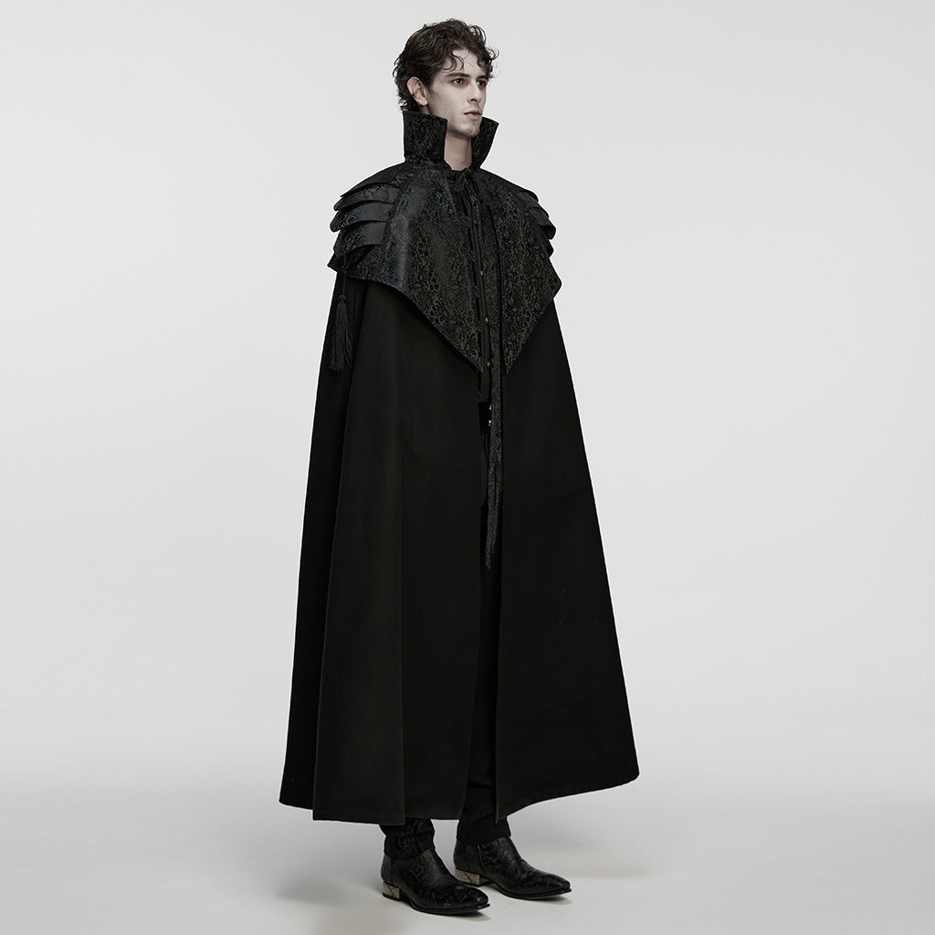 Introducing the Gothic Coat Men's Dark Steampunk Cape with High Collar Design, a dramatic blend of gothic elegance and steampunk flair. This cape is crafted for those who seek a commanding, avant-garde look, with its intricately detailed high collar and armor-inspired shoulder accents. Perfect for making a striking statement, this cape is the ultimate piece for a fearless fashion enthusiast.