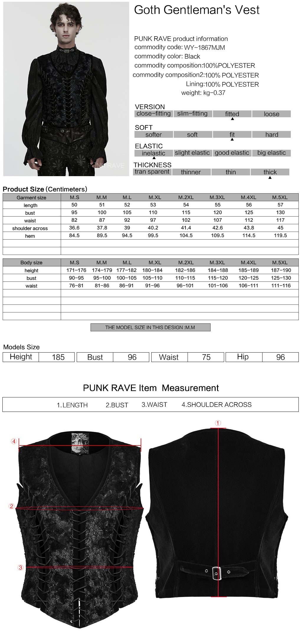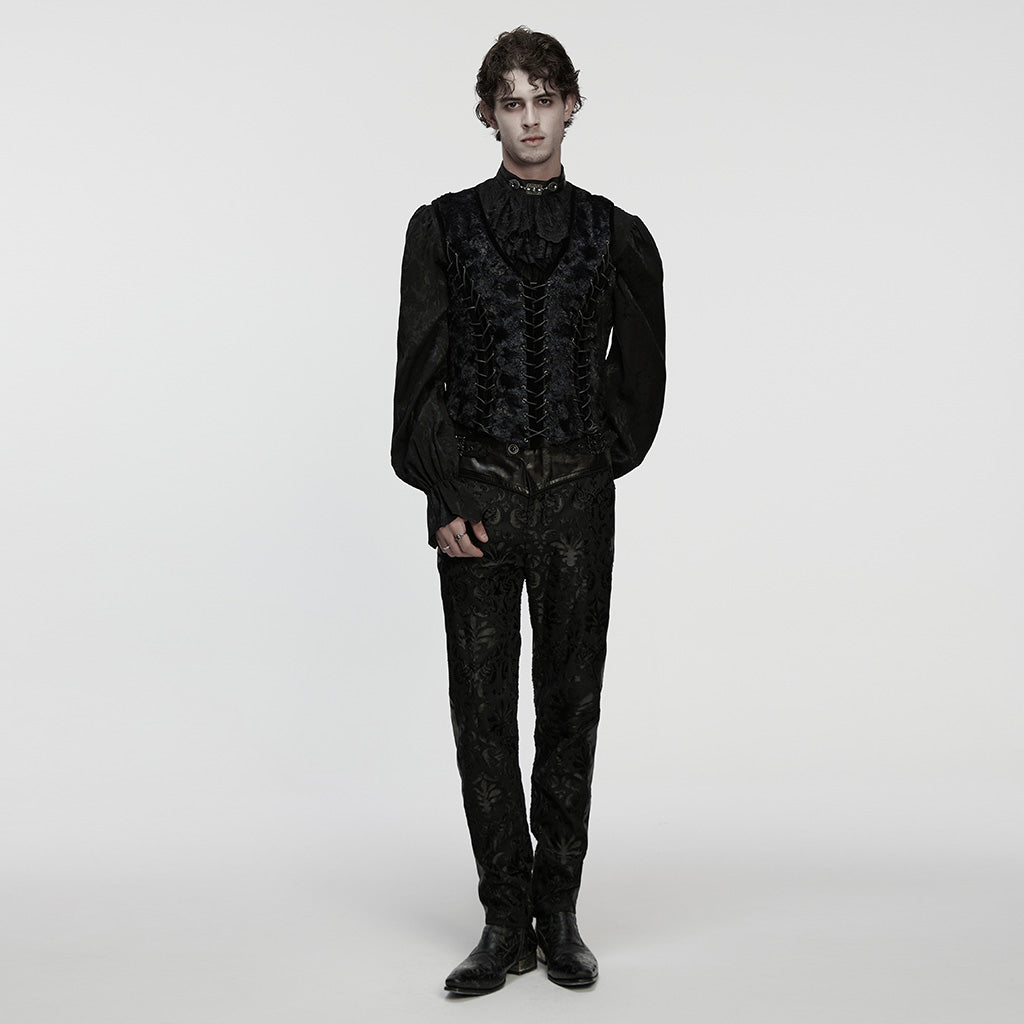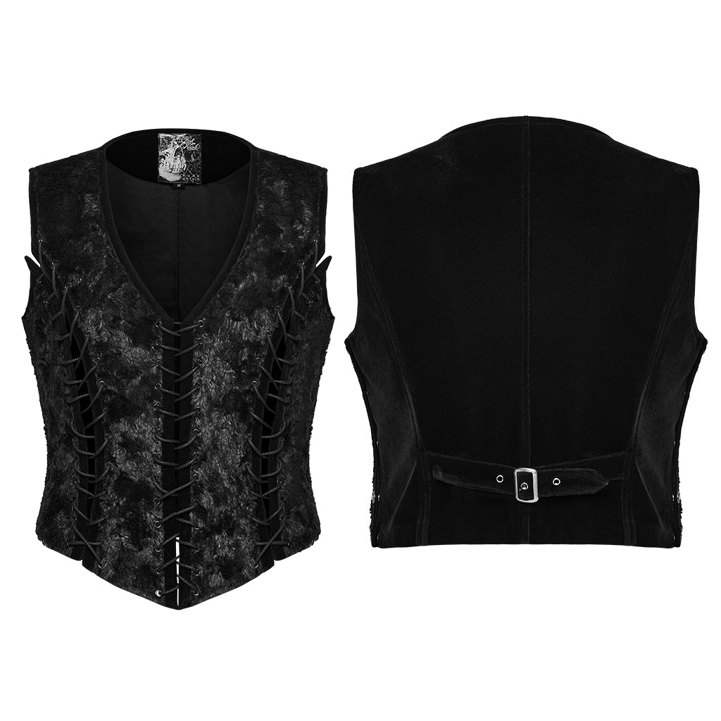 Fit and Feel: Designed with a fitted cut, this vest molds to the body, offering refined elegance with slight stretch for movement. The rich materials lend a luxurious feel, perfectly complementing the structured gothic design.