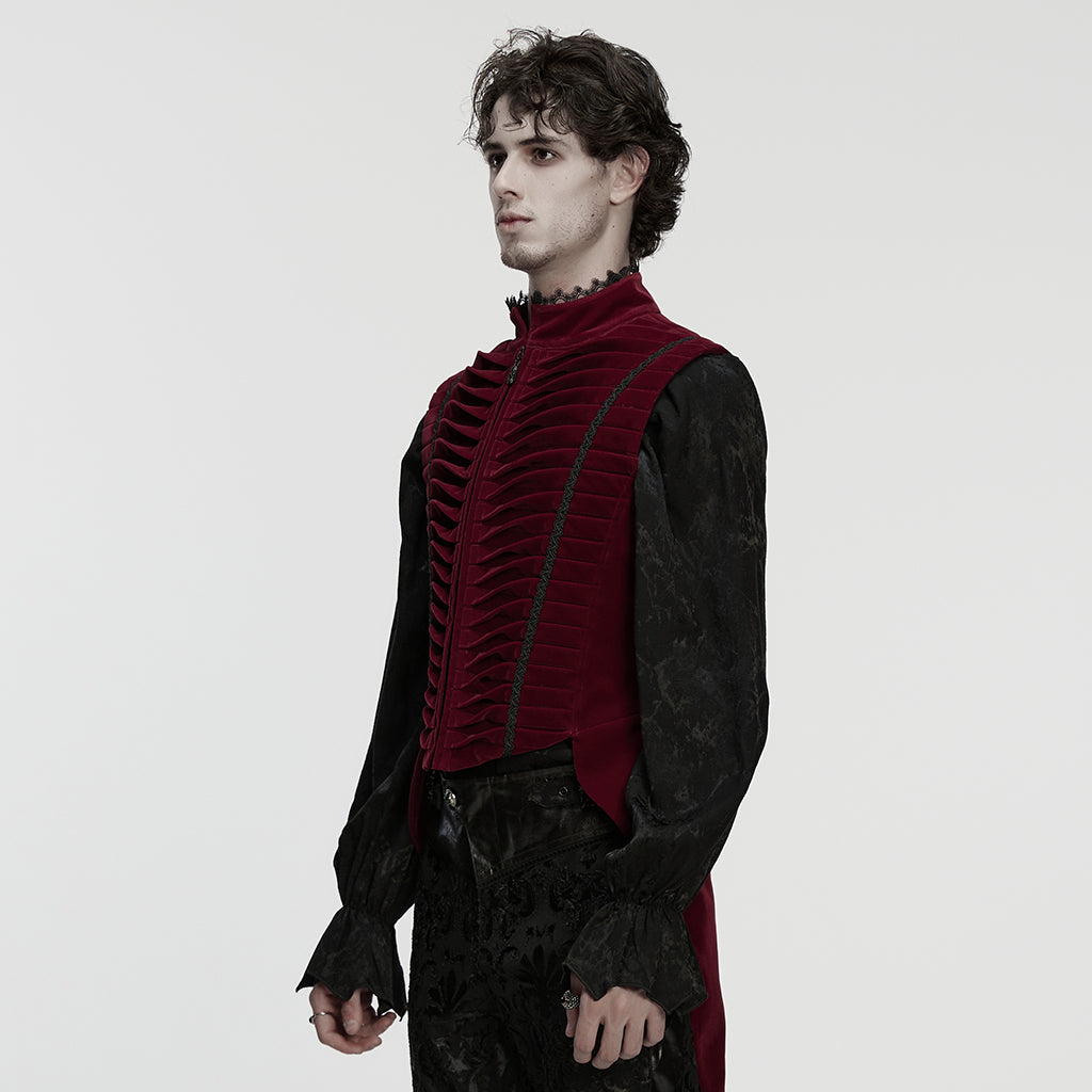 Introducing the Men's Red Ribbed Gothic Vest Tailored High Collar, a masterpiece of gothic fashion that marries timeless elegance with modern flair. This vest stands out with its high collar and striking ribbed details, perfect for those who wish to make a bold statement. Whether you're attending a gothic event or adding a unique piece to your wardrobe, this vest is your ultimate choice for an impactful appearance.
